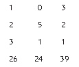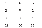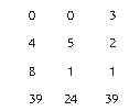 右边那列 3、2、1、39,表示 3 捆优质稻子、2 捆普通稻子、1 捆劣质稻子 能碾 39 斗米,相当于方程 3x+2y+z=39。 中间那列 2、3、1、34,表示 2 捆优质稻子、3 捆普通稻子、1 捆劣质稻子 能碾 34 斗米,相当于方程 2x+3y+z=34。 左边那列 1、2、3、26,表示 1 捆优质稻子、2 捆普通稻子、3 捆劣质稻子 能碾 26 斗米,相当于方程 x+2y+3z=26。 汉朝数学家通过变换矩阵来消元。《九章算术》里记载的第一步变换是“以 右行上禾,遍乘中行”,也就是用右列第一项的数字 3,去乘中间那列的每一项。 乘过以后,原始矩阵变换如下: