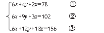 拿②减①,得到④ 5y+z=24。拿③减②,得到⑥:3y+15z=54。将5y+z=24 的左右项各乘以15,得到⑦:75y+15z=360。