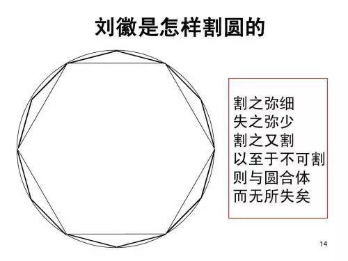 定义π不仅为我们提供了实际的测量方法,还提供了数以百计的数学方法,而这个过程就是数学的精巧所在。 像阿基米德和刘徽这样的数学家,以及与他们相距几千年的一些不知名的古埃及人,都曾使用切割法来得出π的近似值。刘徽将π精确到小数点后四位数,这比他早约一千年的阿基米德得出的近似值还要精确些。还真是奇怪了。