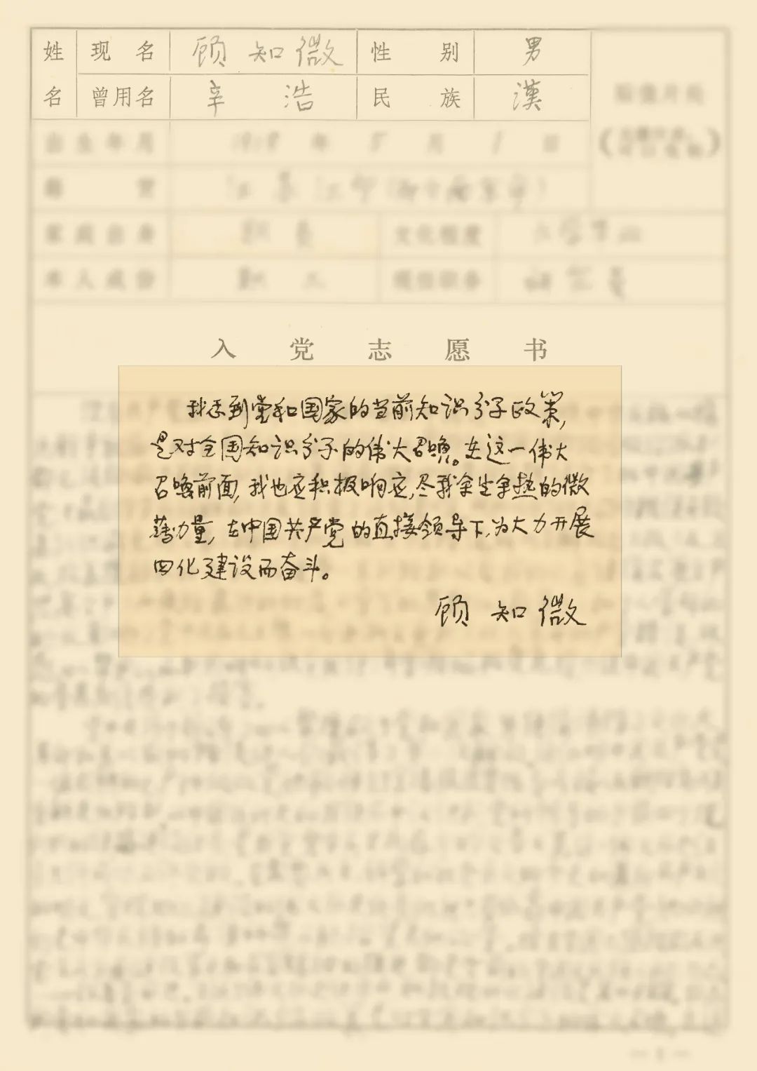 ——摘自顾知微1984年6月《入党志愿书》