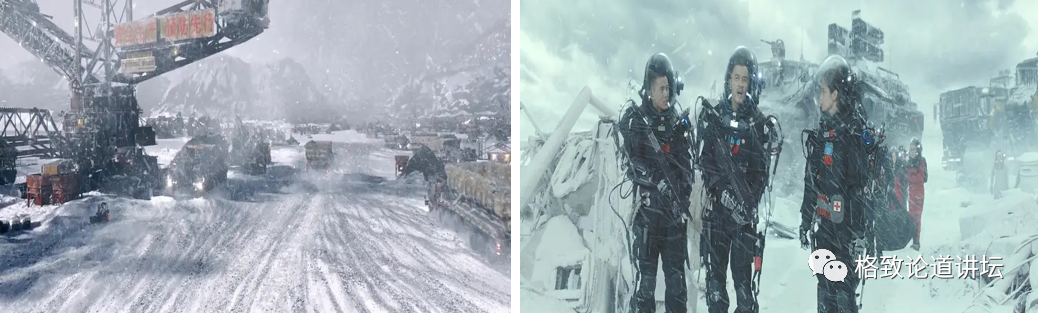 还有在电影里看到的下雪场景,这些雪比真实的雪大很多,也不是真实的状态,是用计算机渲染出来的,采用了实时渲染技术,制作出了在荧幕上看到的《流浪地球》科幻片。