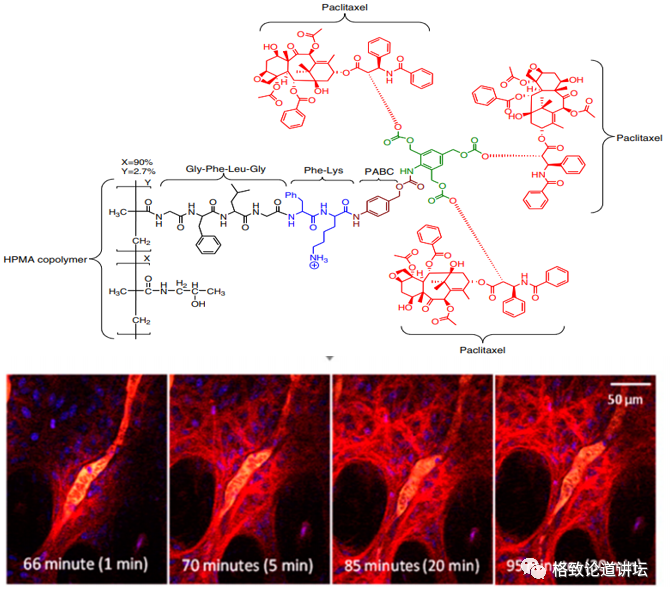 紫杉醇是一种抗肿瘤药物,上图是我们计算和实验的对比,做的是紫杉醇搭载在药物载体上,进入体内不断缓释发挥作用的过程。