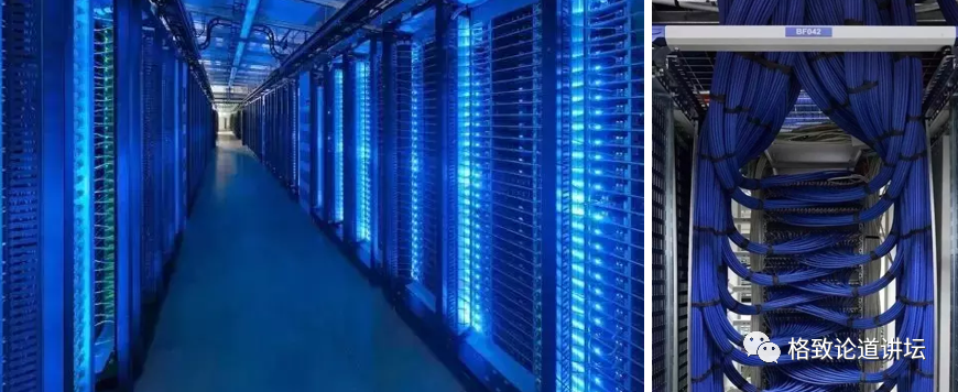 机柜的背面就是高速网络,用网线连接起来,这样可以使超级计算机的每个计算节点协同工作。