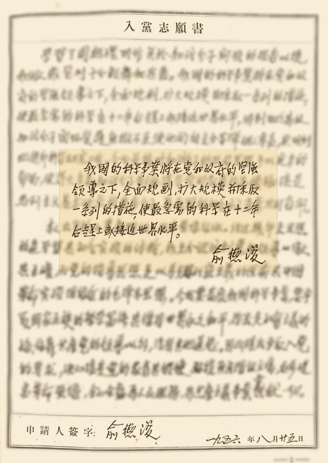 ——摘自俞德浚1956年8月《入党志愿书》