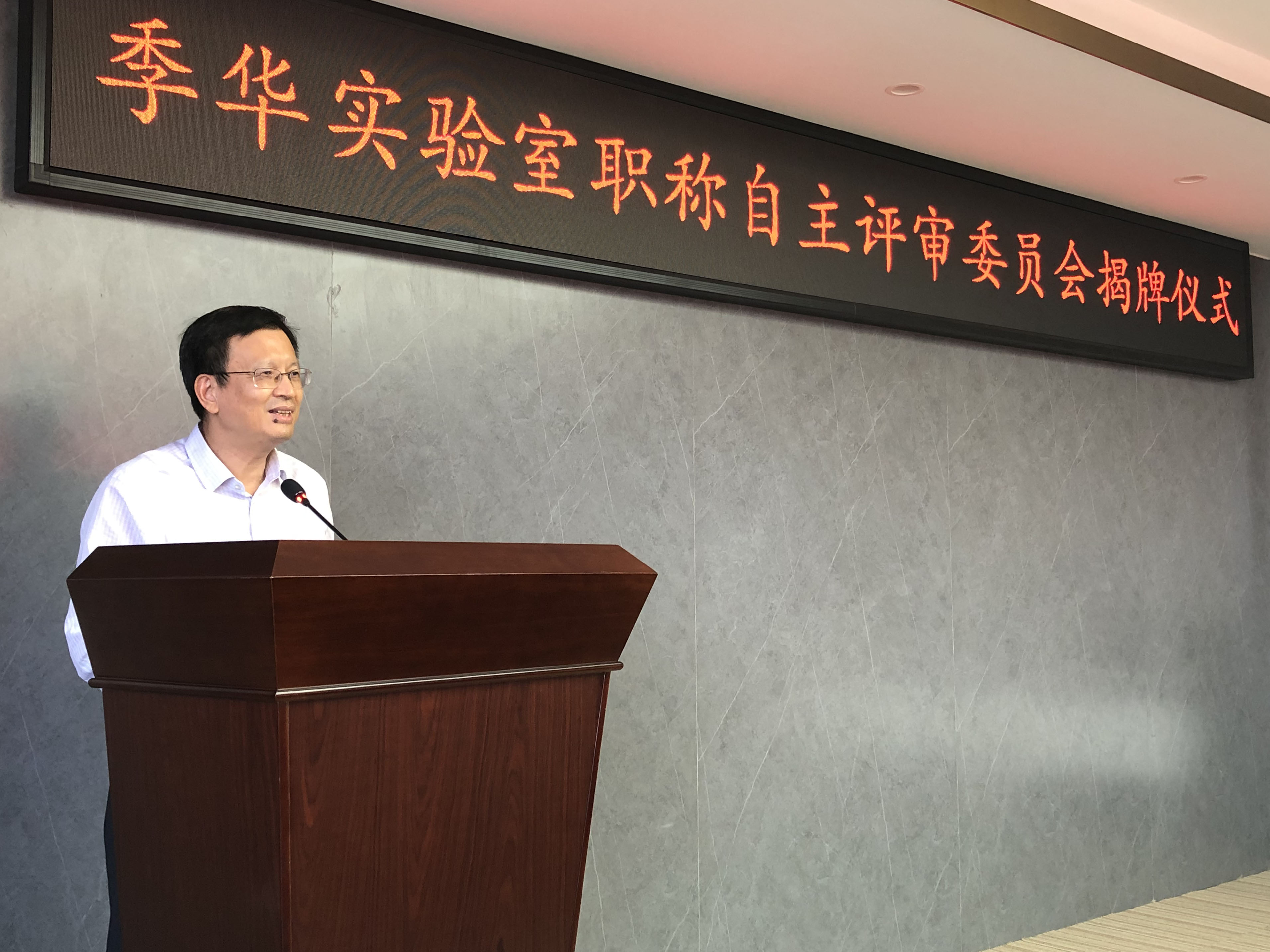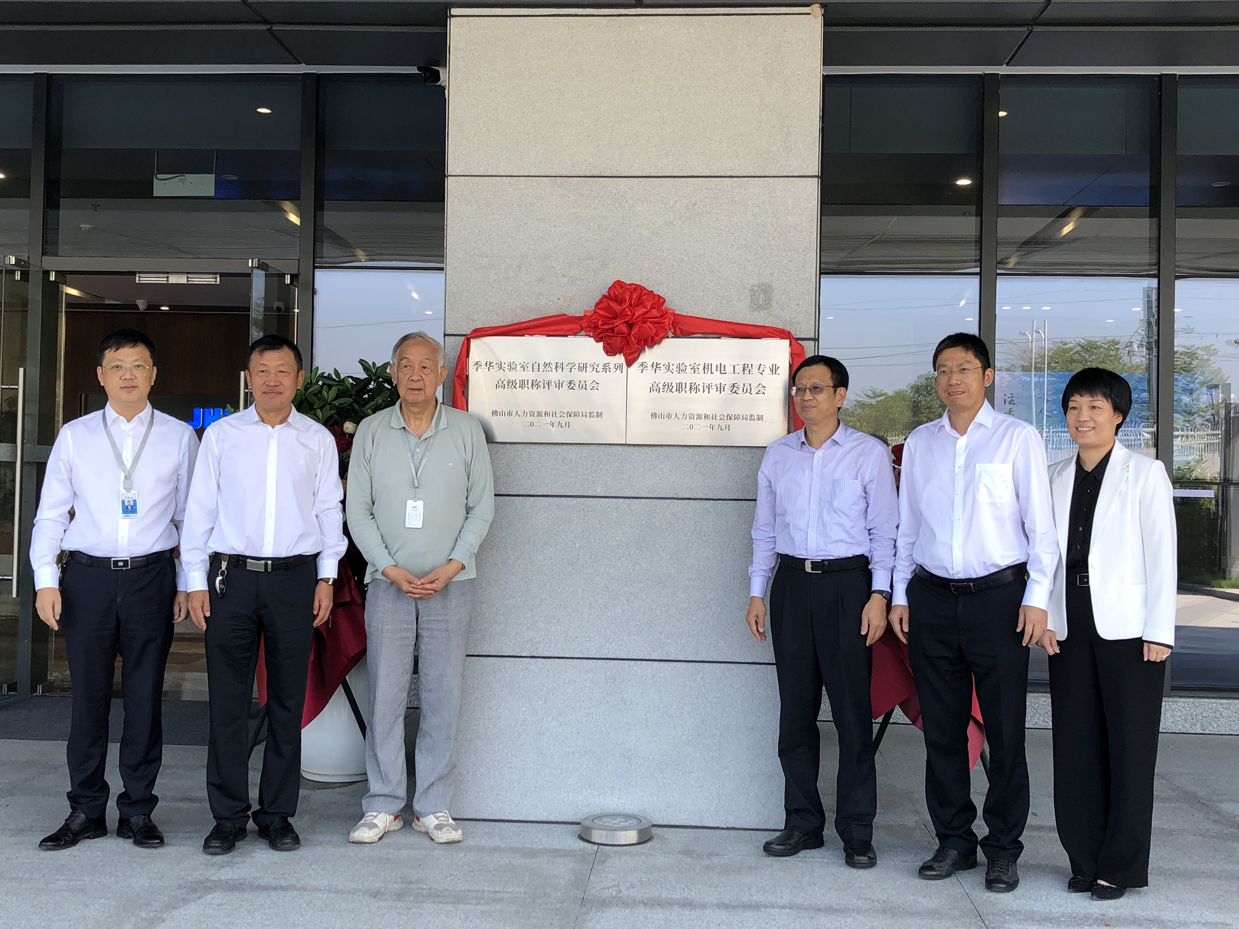 宋志义指出经过三年多的快速发展,季华实验室已形成了一支“以院士专家为核心、高端领军人才为骨干”的人才队伍梯队,季华实验室作为第一批取得职称自主评定权的省实验室,将充分利用好职称自主评定这一权限,引育并重,打造一支梯次发展、结构合理的高层次科技人才队伍,努力在关键核心技术领域形成重大突破和先发优势,为更好服务佛山经济社会提供充足的人才支撑。 活动最后,叶恒强院士、魏建文、吴文志、宋志义、陈俊江等领导共同为季华实验室自然科学研究系列和机电工程专业高级职称自主评审委员会揭牌。