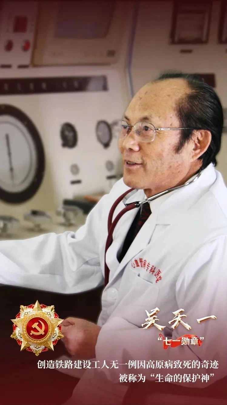 吴天一,塔吉克族,新疆伊犁人,1982年5月入党。他投身高原医学研究50余年,提出高原病防治救治国际标准,开创“藏族适应生理学”研究,诊疗救治藏族群众上万名。青藏铁路建设期间,主持制定一系列高原病防治措施和急救方案,创造了铁路建设工人无一例因高原病致死的奇迹,被称为“生命的保护神”,荣获“国家科技进步奖特等奖”。
