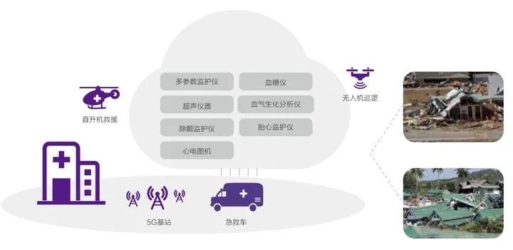在2019年6月的四川长宁地震中,5G应急救援车第一时间抵达灾区,并通过急救车与四川省人民医院为灾区患者提供高效高质的诊疗支持,实现了5G技术在灾难医学救援的应用。