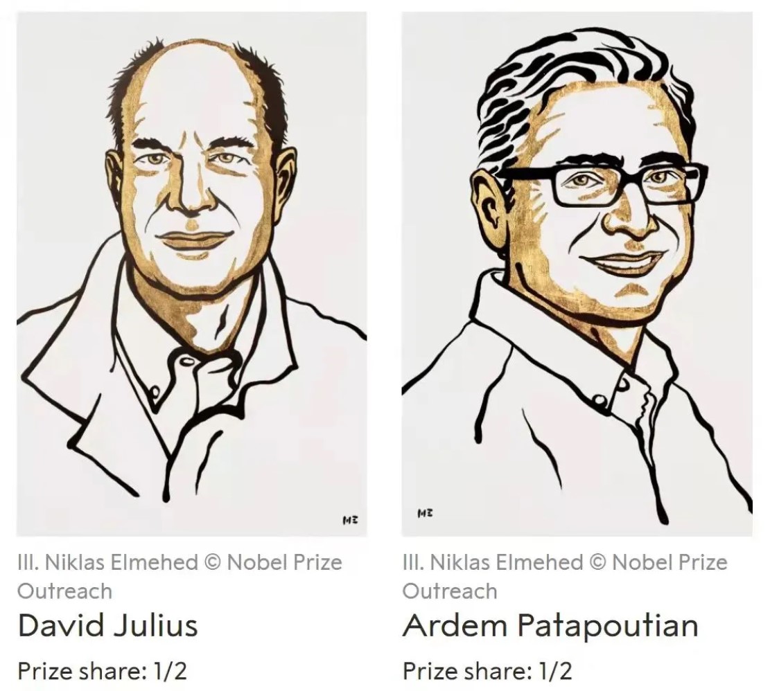 今年的诺贝尔生理学或医学大奖,就是颁给了弄清这个原理的人。他们是美国加州大学旧金山分校的戴维·J·朱利叶斯教授,和美国斯克里普斯研究所的阿德姆·帕塔博蒂安教授,他们二位分享了2021年诺贝尔生理学或医学奖。