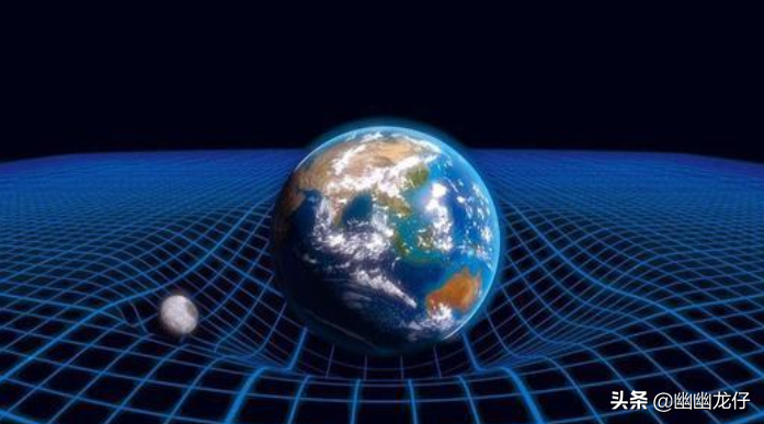 在爱因斯坦的广义相对论中,引力被描述为一种时空弯曲的现象。我们想象,时空就像一张弹簧床,而天体则是大大小小的球类。在一张弹簧床上放一个大质量的铅球。它会把弹簧床压成一个凹洞,再把小质量的弹珠放在凹洞边,它就会沿着凹洞慢慢滚向铅球。这就像大质量的天体用引力“拉”着小天体一样,其本质就是一种时空弯曲的现象。
