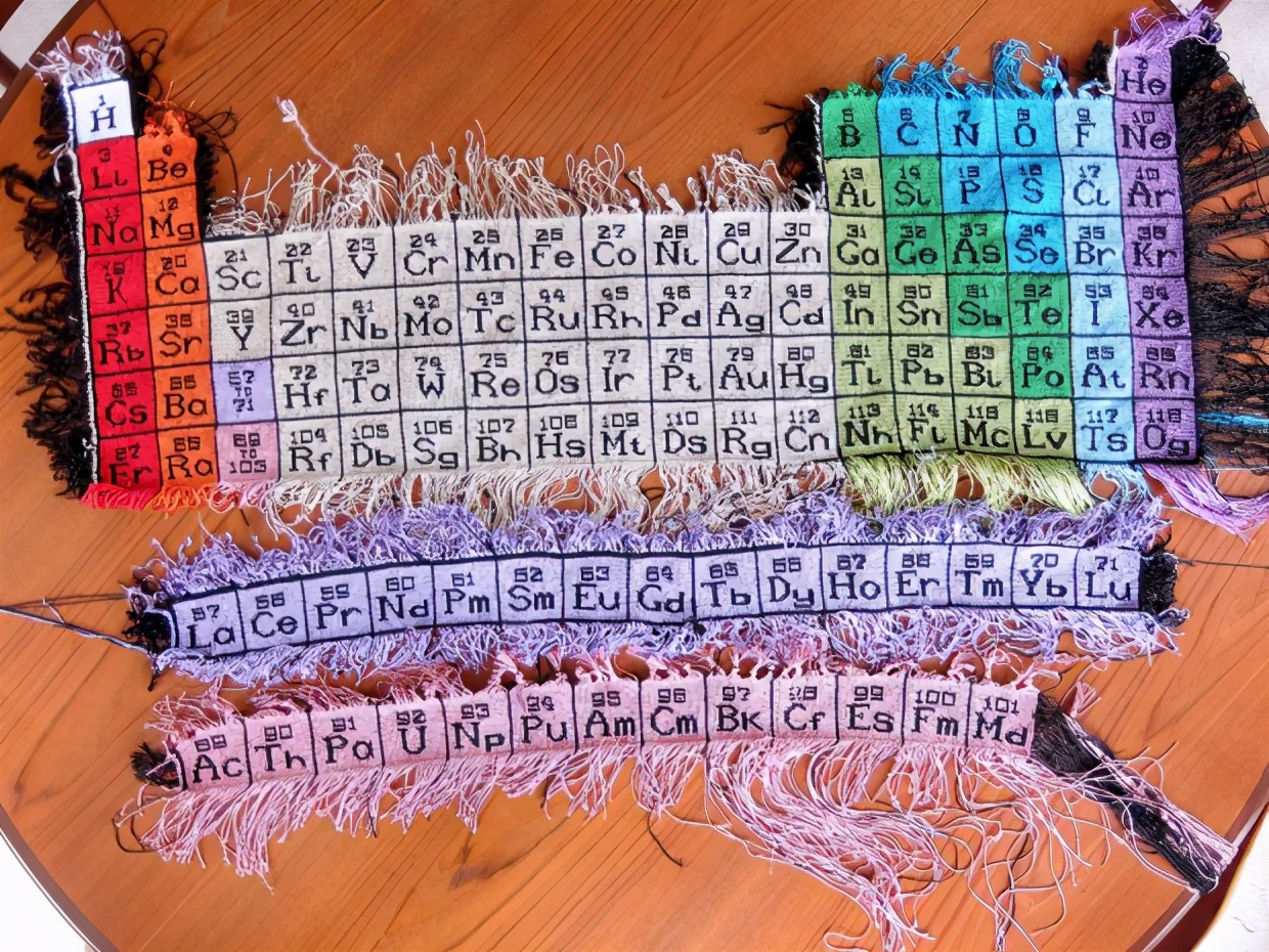 庆祝化学元素周期表150周年(图片来源:https://makezine.com/projects/celebrate-150-years-of-the-periodic-table-by-tying-200000-tiny-knots/)