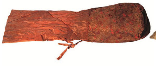 从辛追夫人墓中出土的丝织品,囊括了当时服装衣饰8大类型的面料:绢、纱、罗、刺绣、绮、锦、绦以及组,品种繁多,工艺精细,色彩丰富,制造考究,其华丽与精美程度令人赞叹不已。尤其是包裹在女尸身上的20层丝、麻衣衾,用9道组带捆扎,又覆盖两件丝绵袍,涵盖了春夏秋冬四季的穿、盖。除此之外,考古人员又在西边箱发现了大量的丝织品及生活用品,经点验、鉴别,出土的服饰主要包括绵袍、单衣、夹襦、手套、单裙、绵祾、夹袜、鞋履、假发、发笄、绢帽、步摇、珠佩、带钩、锦囊等,可谓品种齐全,美不胜收。