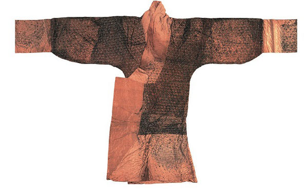 在马王堆汉墓的丝织物宝库中,一号墓西边箱出土的素纱襌(单)衣堪称稀世珍品。素纱襌衣共出土两件,其中一件衣长128厘米,袖长190厘米,重量仅有48克;另一件重49克,相当于一枚鸡蛋的重量(50克左右),折叠起来,可以轻松放入火柴盒中,其轻薄程度完全能够和采用现代纺织技术生产的高级尼龙纱相媲美,也印证了史书中对纱衣“薄如蝉翼、轻若烟雾”的记载。《诗经·郑风·丰》说:“衣锦衣,裳锦裳。”这里所说的“衣”,据考证就是没有里子的衣。多数学者认为,这是贵为丞相夫人的辛追在色彩艳丽的锦袍外面所罩的一层轻薄透明的襌衣,使锦服纹饰若隐若现,朦朦胧胧,既增强了衣饰的层次感,更衬托出锦衣的华美,彰显了自己的尊贵身份。