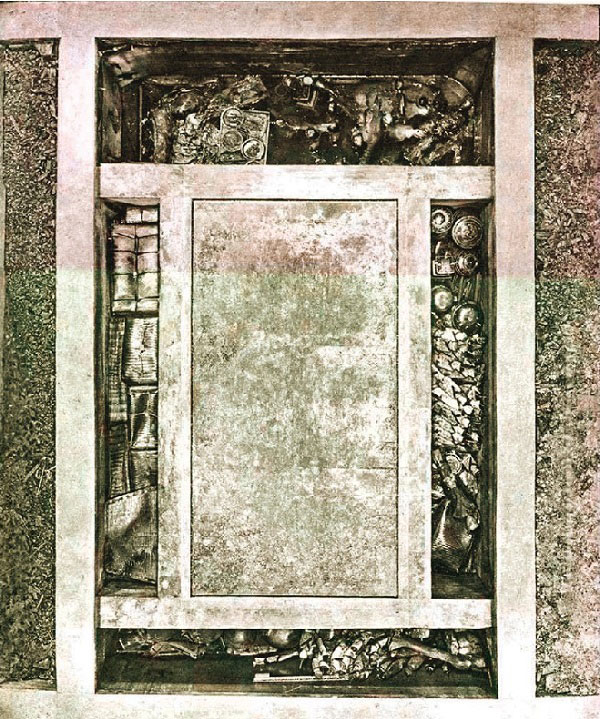 整座一号墓恰如一枚完整的鸡蛋,静卧在20多米深的地下,不透水,不透气,更不透光,基本隔绝了地表的物理和化学影响。墓室四壁皆用黏性强、可塑性和密封性好的白膏泥筑成。白膏泥又名微晶高岭土,颜色白中带青,酷似糯米粑一样,又软又黏。这厚达一米多的白膏泥如同鸡蛋壳筑起第一道防护壁,保护着棺椁。在白膏泥的内面还衬有厚为半米的木炭层,共约1万多斤。它们如同鸡蛋的蛋清一样,同样发挥着不可或缺的防湿、防潮兼吸水的特殊作用,以保持棺椁的干燥。辛追夫人入土前,尸身用多层丝麻织物紧裹,这有助于隔离空气和防止蚊蝇产卵。墓室筑成后,墓坑再用五花土夯实。这样一来,整个墓室就与地面完全隔绝,并能保持18℃左右的相对恒温,不但隔断了光照,还防止了地下水流入墓室。