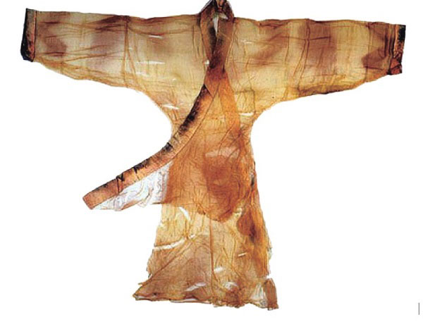 薄如蝉翼轻若烟雾马王堆被发掘的三座汉墓中,以一号墓,即利仓夫人辛追墓最为轰动。辛追夫人千年不朽,形体完整,全身皮肤润泽,吹弹可破,是世界防腐史上的奇迹。墓中出土的服饰文物及简牍所记载的有关服饰资料是我国目前考古发现中数量最多、品种最全、制作精美、保存最为完整的,堪称中国考古发掘中的空前发现。事实上,尽管我国是世界上最早养蚕、缫丝和织绸的国家,“丝国”的历史已逾5000年,但由于蚕丝是由蛋白质组成的动物纤维,极易腐朽,不易保存,因而古代丝绸织造究竟发展到了何种水平,现代人难窥一隅。长沙马王堆一号汉墓的发掘,首次大规模、全方位地揭开了这一谜团,犹如一座2200多年前的丝绸宝库展现在世人面前。