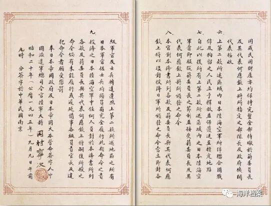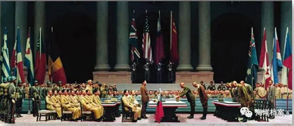 1945年9月9日侵华日军代表在南京签署并递交投降书