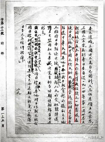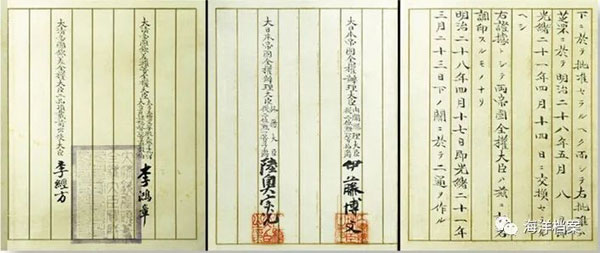 日本于1894年7月发动甲午战争,同年11月底,日军占领中国旅顺口,清朝败局已定。在此背景下,1894年12月27日,日本内务大臣野村靖致函外务大臣陆奥宗光,认为“今昔形势已殊”,要求将在钓鱼岛建立国标、纳入版图之事提交内阁会议决定。1895年1月14日,日本内阁秘密通过决议,将钓鱼岛“编入”冲绳县管辖。