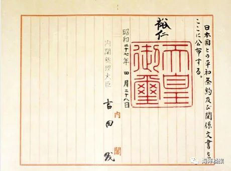 盖有日本天皇玉玺印章的《旧金山和约》文本