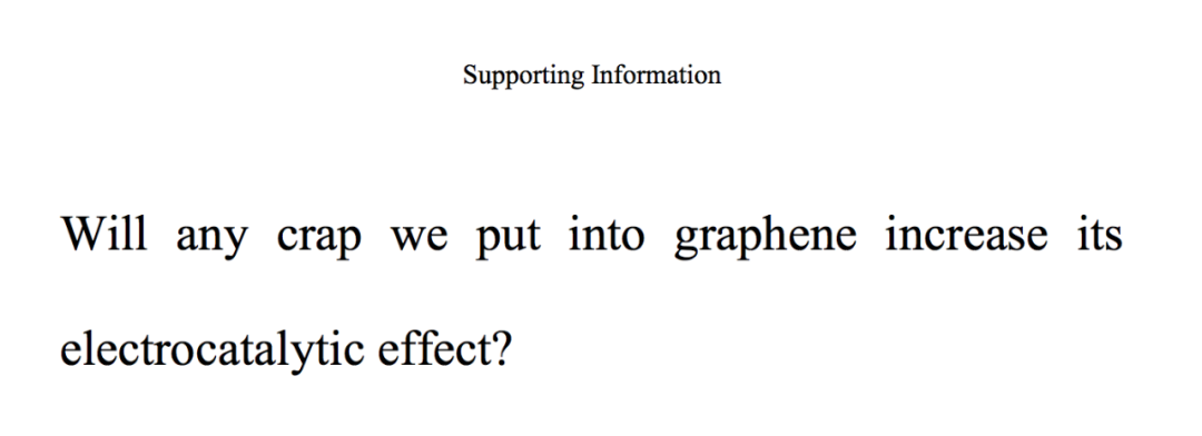 有干货就有水货。去年的一篇文章,《我们放入石墨烯中的废物会增加其电催化作用吗?》,就讽刺了石墨烯学术圈水文泛滥的现象。