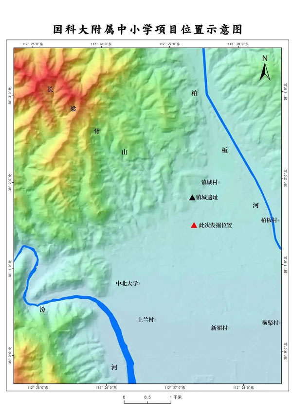 此处遗址位于太原市尖草坪区柏板乡镇城村西南900米处,地处长梁背山山前的冲积扇上,地势西北高东南低。5月至7月,为配合该项目的建设,在前期调查勘探的基础上,山西省考古研究院、太原市文物考古研究所联合对项目施工区域内发现的一处仰韶文化遗址进行了发掘。