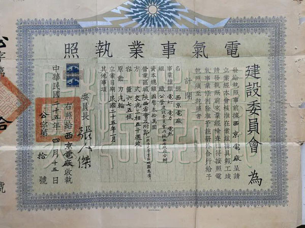 一张电气事业执照