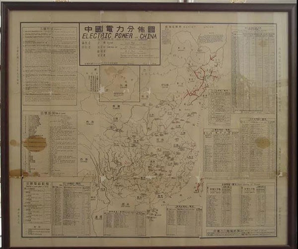 1948年第一次出版的《中国电力分布图》是在嘉兴电力博物馆筹建过程中,从苏州民间收藏爱好者手中征集到的。地图编制者是英国人皮炼,记录了1947年以前中国电网和地方电厂的详细分布情况、全国主要电厂动态、1936~1947年全国电力主要统计资料的比较以及抗日战争结束以后中国电力发展的基本史料。这件国宝级的藏品是中国百年电力的兴衰荣辱和沧桑巨变的见证。