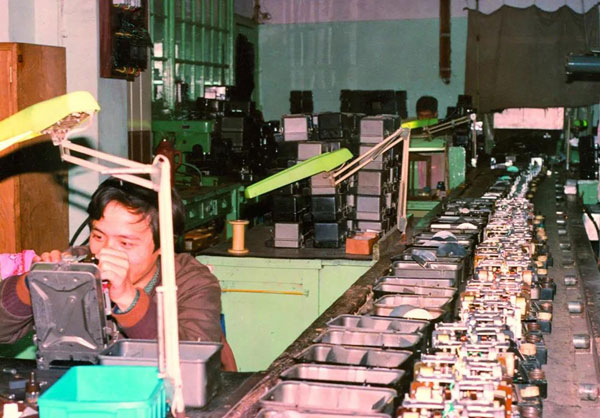 上世纪80年代,自制电表检定流水线。