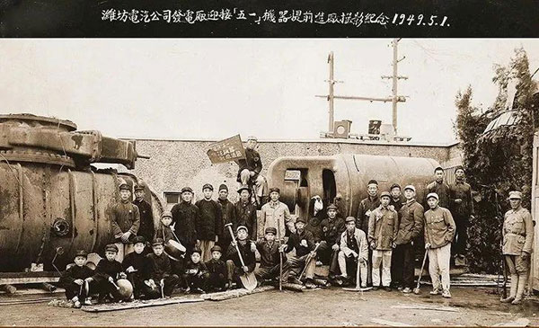 山东潍坊供电公司史迹馆中仍然陈列着这样一组雕塑:火车站旁,一群穿布衣的人们聚集在一起,正齐心协力地用绞磨、撬杠挪动着一台巨大的凝汽冲动式汽轮发电机。