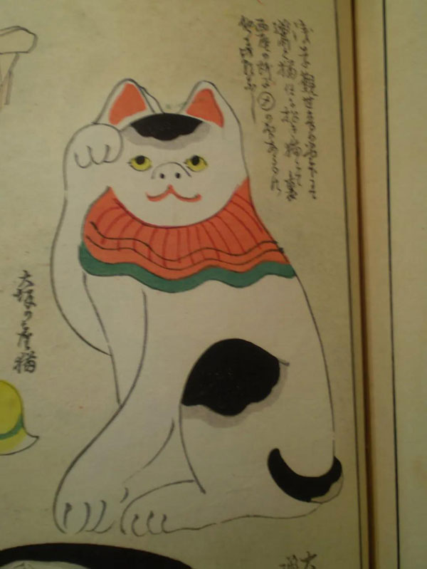 “猫洗面过耳则客至”,唐《酉阳杂俎》中的记述可谓十分形象。但目前普遍认为,形成一个固定的外形、且由陶制的招财猫,是出现在一个半世纪前的日本。在日语和英语中,其实都是招(手)猫,其含义则并不仅仅限于“招财”,不过在今天的文章中,出于中文语境的习惯,译者暂且将其统一翻译为“招财猫”。“挥手的中国猫(Chinese waving cat)”可谓众所周知——至少大家都熟悉这个形象。这种世俗的、通常是金色的装饰品在全世界的唐人街和亚洲商店都随处可见,但是这些可爱的小塑像根本不是中国的:它们来自日本。这种小塑像在日语中被命名为“招き猫/maneki-neko”(字面意思是“招手的猫”),与人们的普遍认知相反,却正如它的名字那样,它实际上并不是在“挥手”。不同于西方文化,在日本文化中,招呼别人过来的方式是手掌向前,手指朝下。