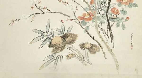 清 沈庆兰 松芝梅竹轴 台北故宫博物院藏