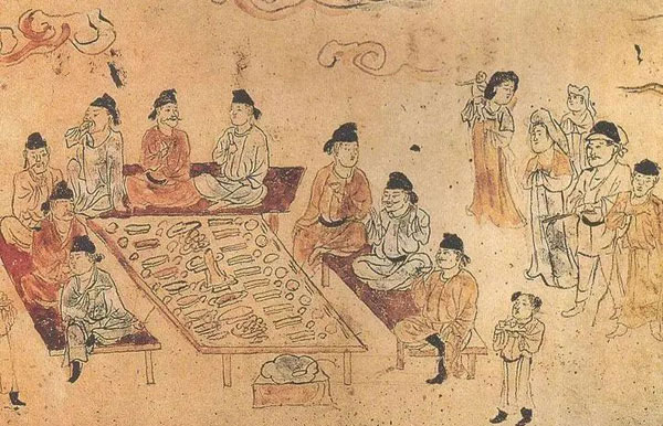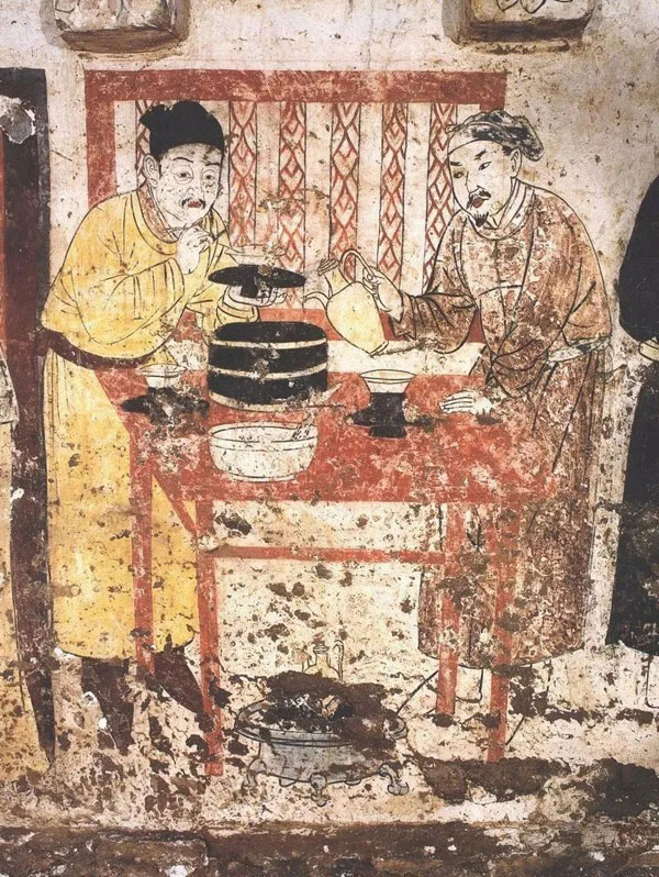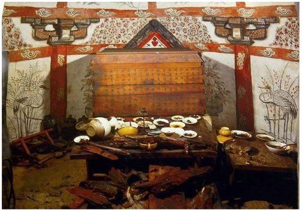 宣化辽墓,张文藻墓后室,随葬了一桌子食品在汉人的观念中,墓葬属于“阴宅”,他们相信,当人们去世后,依然能够享受墓葬中随葬的物品。早期的墓葬大多是直接在土地里挖出一个墓室,直到大约西汉中期以后,开始利用砖、石修建墓葬之后,“阴宅”的面貌更加的明确。