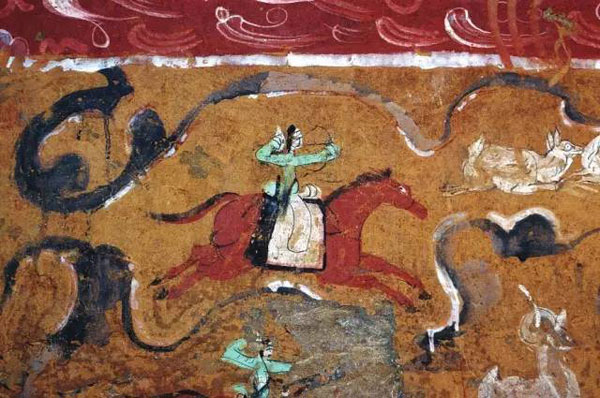 鞍马游骑图,娄睿墓出土