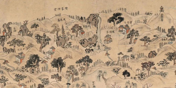 清康熙55年至雍正5年间(1716-1727)〈杭城西湖江干湖墅图〉 局部到了靖康之难后,宋室南渡,自是为杭州添了些天子气,城阙高耸,宫室华丽。皇家对禅宗的推崇,更促成江南一带禅寺林立。据《咸淳临安志·寺观》记载,当时仅杭州辖区内就有寺院773所。