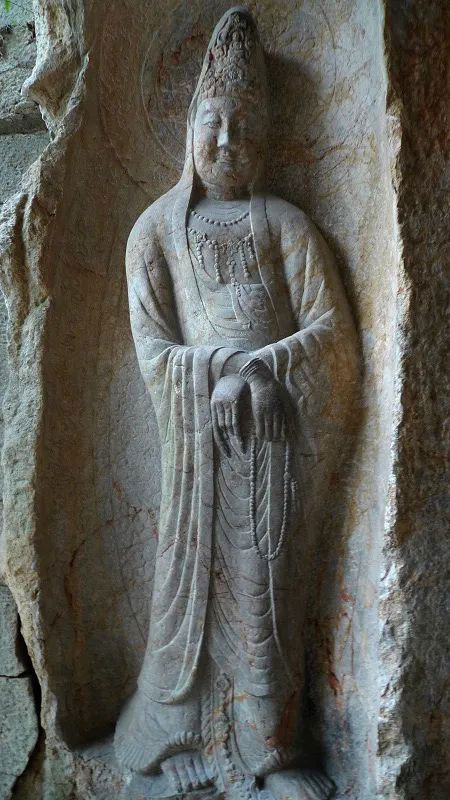 而在江南,石窟造像寄隅在湿答答的雨滴之中。穿过繁华市井,一脚拐入郁郁葱葱的山林,清净的佛影就静静等在青山之中。