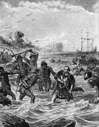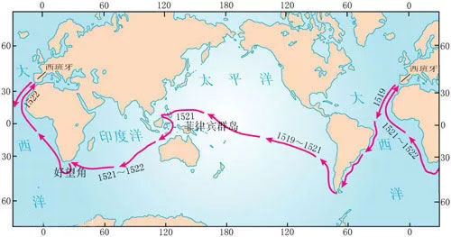 1521年3月,麦哲伦船队成功横渡太平洋,到达菲律宾群岛,他们在岛上补充了食物和淡水。麦哲伦一心想把菲律宾群岛变成西班牙的殖民地,但遭到了土著人的强烈反抗,航海家麦哲伦在冲突中不幸丧生。