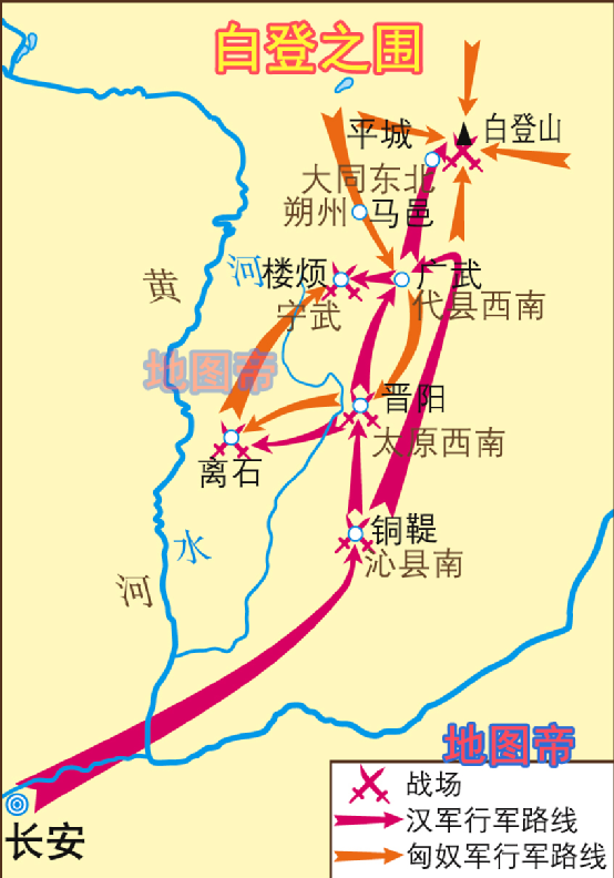 楚汉争霸期间,刘邦为了拉拢诸侯,给功臣封王,其中就有韩王信。公元前201年,韩王信勾结匈奴,在大同发动叛乱,南攻太原。汉高祖刘邦亲率大军迎击匈奴,连战连捷。但刘邦由于轻敌冒进,被匈奴围困大同白登山七天七夜,即白登之围,经谋士陈平运作刘邦才得以脱险。