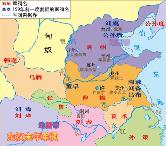 在镇压黄巾军的过程中,地方豪强趁机壮大自己的势力,各地形成汉末军阀割据的局面,如袁绍占据并州、冀州、青州,曹操占据兖州,刘表占据荆州,孙策占据江东等等。在群雄逐鹿的乱世,东汉皇帝名存实亡,逐渐沦为各路豪强利用的工具。
