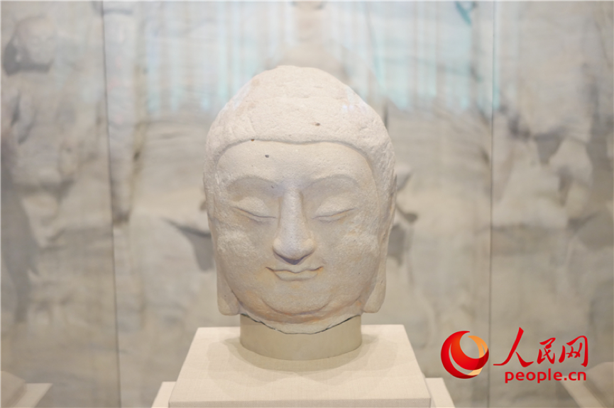 天龙山石窟第8窟北壁主尊佛首。人民网 韦衍行摄