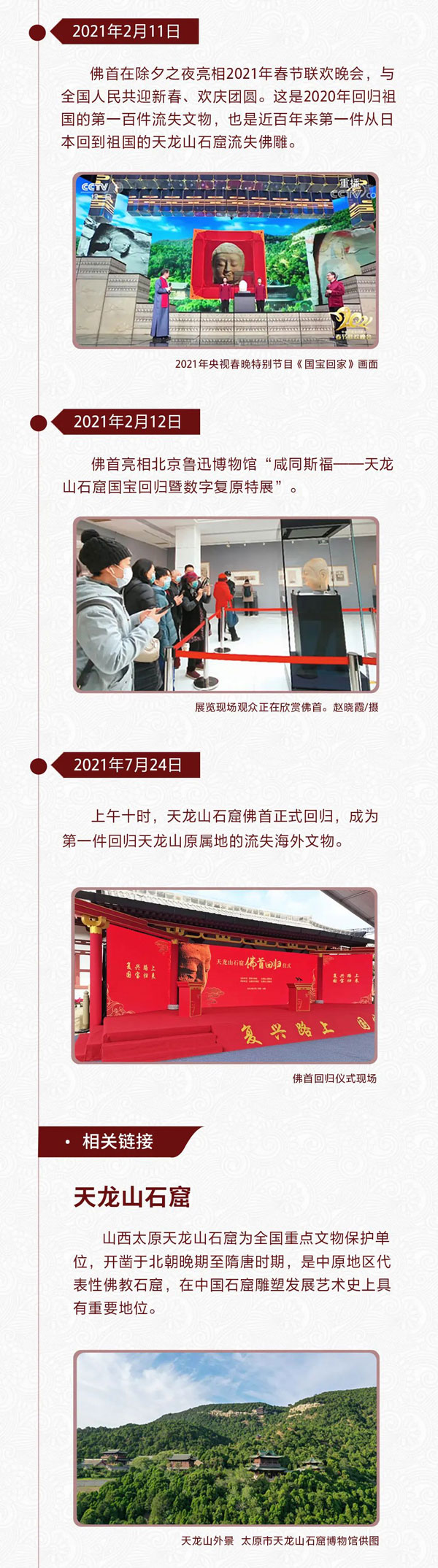 还记得曾在今年春晚上亮相的这尊佛首吗?7月24日,天龙山石窟佛首回归仪式在山西太原举行。这件在去年重回祖国怀抱的国宝回到了天龙山石窟,再度看到了故乡的风景。