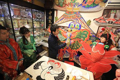 镶嵌:在中国风筝上,有些图案是镶在其他完整的图形之中的,如沙燕风筝的膀窝里有时镶着蝙蝠、荷花等。